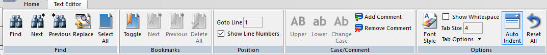 The Options group contains commands that you can use to format the text in a procedure. The Options group is unavailable when you access the Text Editor tab through the Embedded JavaScript or Embedded CSS view tabs, in the HTML canvas. The Options group is shown in the following image.