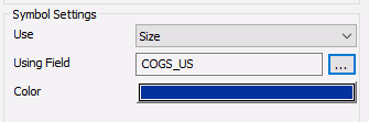 This example uses the COGS_US field to size the markers and blue to color the markers, as shown in the following image.