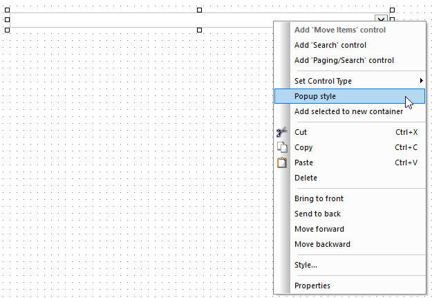 • Right-click the control and click Popup style.