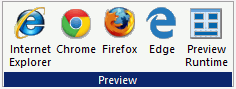 The Preview group, as shown in the following image, allows you to preview HTML output in Internet Explorer, Chrome, Firefox, and Edge browsers to be sure that your content displays correctly.