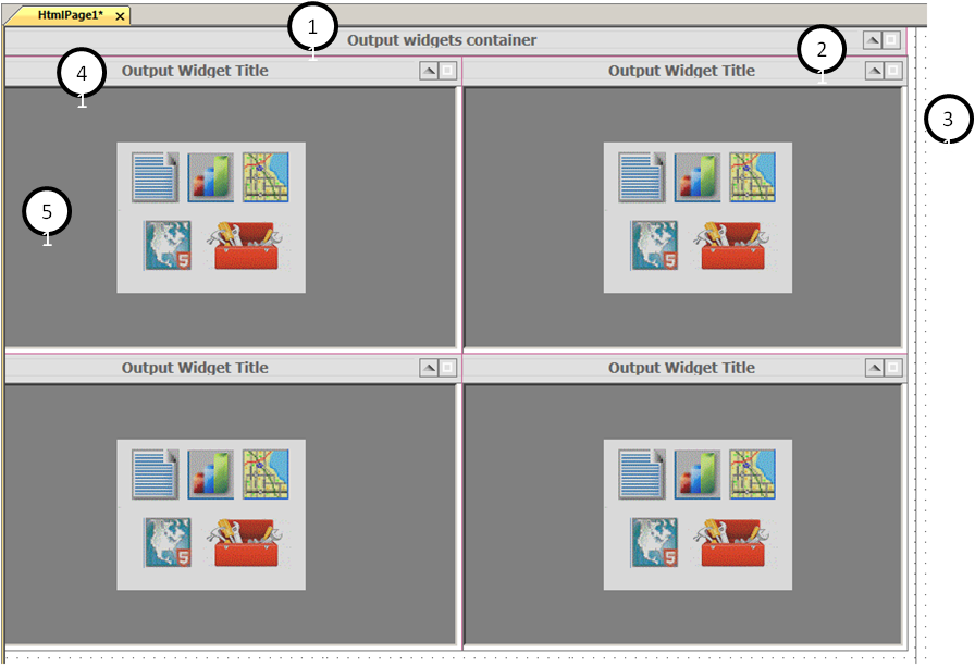 1. Main Widget. Defined as windowPanel1 <DIV> in the Properties panel, the default title is Output widgets container.