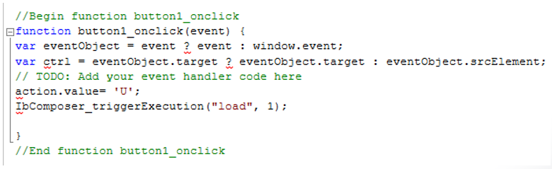 1. Using the selrate or stack().field, edit the Maintain Data code to collect the value from the drop box, as shown in the following image. This works for drop boxes, list boxes, and radio buttons.