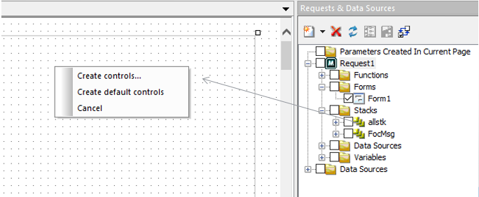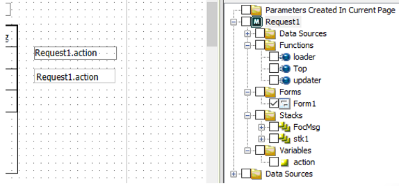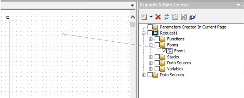 2. From the Requests & Data Sources panel, expand Request1 and the Forms folder.