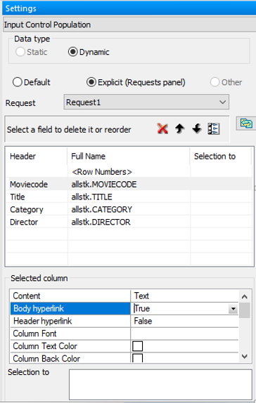 2. Select Moviecode and change the Body hyperlink property to True, as shown in the following image.