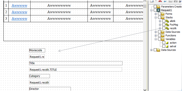 2. From the Request & Data Sources panel, expand the Stacks folder and drag recstk onto the form. Left-click and drag for default fields, as shown in the following image.