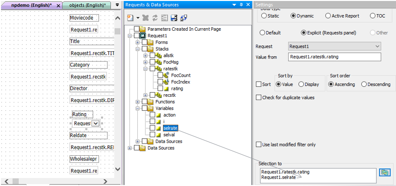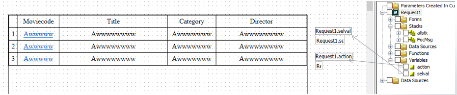 3. Rename edit1 and edit2 to selval and action, as shown in the following image.