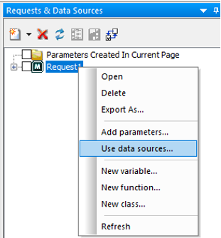 2. Right-click the Request1 parameter and select Use data sources, as shown in the following image.