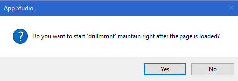 The following WebFOCUS App Studio dialog box opens, asking you whether you want to start the Maintain Data procedure after the page is loaded.