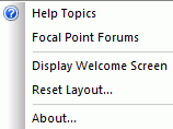 You can access the WebFOCUS App Studio Help content, Focal Point Forums, WebFOCUS App Studio licensing information, and other product options from the Help menu. The Help button is always available. It is located in the upper-right corner of the App Studio interface, as shown in the following image.