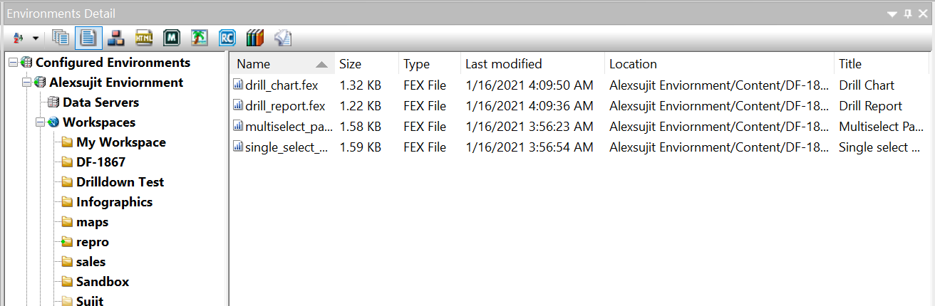 As shown in the following image, the Environmental Detail panel shows information about the selected folder and its contents.