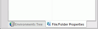 This handle option combines the panels into a single container with tabs. You can switch between the panels by clicking the appropriate tab at the bottom of the container. An example of the Environments Tree tab and File/Folder Properties tab, in a combined panel container, are shown in the following image.