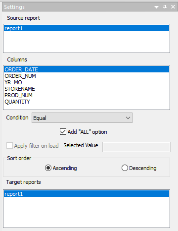 You can select the sort order of display for a control for In-Document Analytic formats in the HTML and Document canvas. You can select Ascending or Descending from the Sort order option in the Settings panel. Ascending is the default value selected. At run time, the values will be sorted based on the sort order selected.