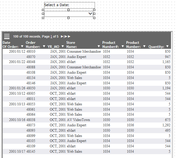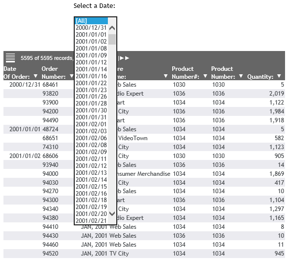 When you run the report, as shown in the following image, notice that the date values for the control are now sorted in the descending order.