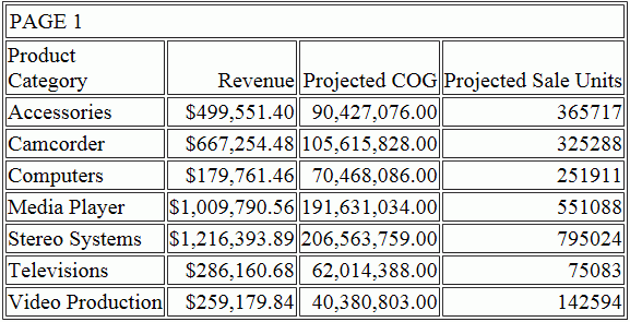 JOIN AS_ROOT PRODUCT_CATEGORY IN WF_RETAIL TO UNIQUE PRODUCT_CATEGORY IN PROJECTED END TABLE FILE wf_retail SUM REVENUE_US PROJECTED_COG PROJECTED_SALE_UNITS BY PRODUCT_CATEGORY END