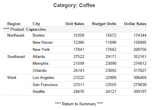 A report like the following sample is displayed.