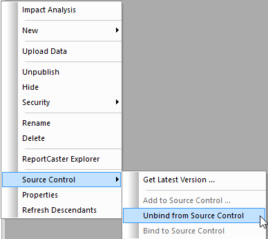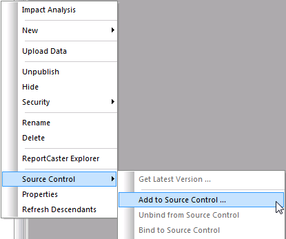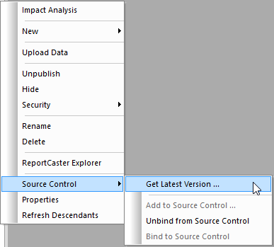 If the Source Control shortcut menu does not display, the WebFOCUS environment is not configured for Source Control. For more information on configuring a WebFOCUS environment for Source Control, see the TIBCO WebFOCUS® Security and Administration manual.