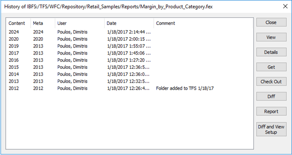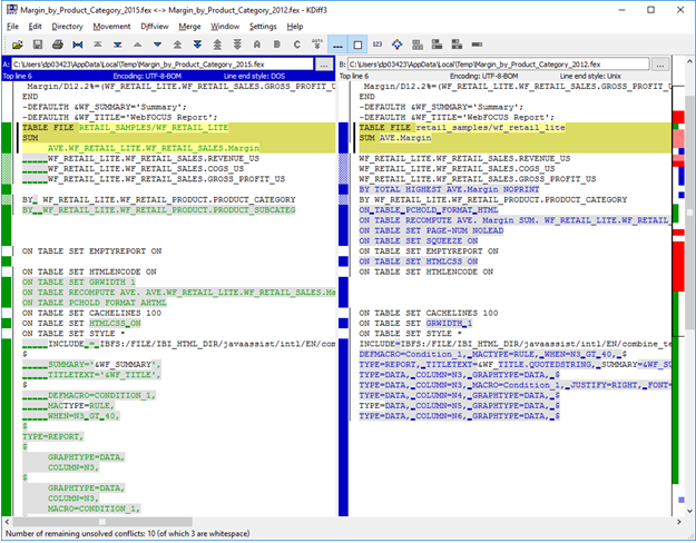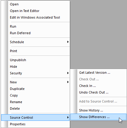 You can show the difference between a file in WebFOCUS and the file in the Source Control database.