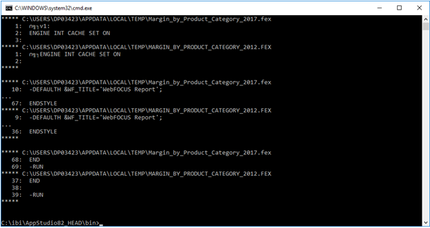 Performing a diff with these options displays the output in a command window, as shown in the following image.