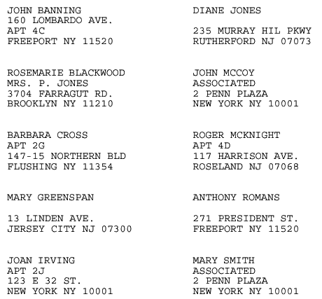 SET ONLINE-FMT = PDF TABLE FILE EMPLOYEE BY LAST_NAME NOPRINT BY FIRST_NAME NOPRINT ON FIRST_NAME PAGE-BREAK HEADING "<FIRST_NAME <LAST_NAME" "<ADDRESS_LN1" "<ADDRESS_LN2" "<ADDRESS_LN3" ON TABLE SET PAGE-NUM NOPAGE ON TABLE SET STYLE LABEMP END