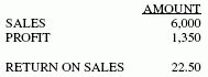 DEFINE FILE REGION AMOUNT/I5C=E_ACTUAL; END TABLE FILE REGION SUM AMOUNT FOR ACCOUNT 3000 AS 'SALES' LABEL SLS OVER 3100 AS 'COST' LABEL COST NOPRINT OVER RECAP PROFIT/I5C = SLS - COST; OVER " " OVER RECAP ROS/F6.2 = 100*PROFIT/SLS; AS 'RETURN ON SALES' END