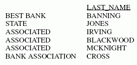 TABLE FILE EMPLOYEE PRINT LAST_NAME BY BANK_NAME ROWS 'BEST BANK' OVER STATE OVER ASSOCIATED OVER 'BANK ASSOCIATION' END