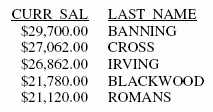 TABLE FILE EMPLOYEE PRINT LAST_NAME BY HIGHEST 5 CURR_SAL END