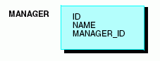 Assume that you have a single-segment data source called MANAGER, which includes the ID number of an employee, the employee name, and the ID number of the manager of the employee, as shown in the following image.