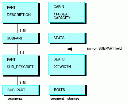 While many of the larger parts are constructed of several levels of subparts, some of these subparts, such as bolts, are used throughout aircraft at many different levels. It is redundant to give each occurrence of a subpart its own segment instance. Instead, use the two-segment design shown previously and then join the data source to itself: