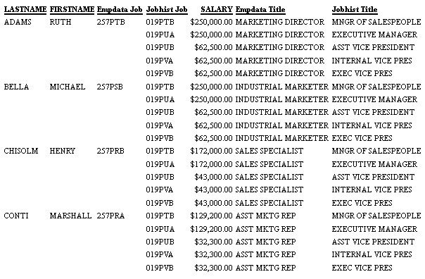 SUM SALARY TITLE AS 'Empdata Title' FUNCTITLE AS 'Jobhist Title'