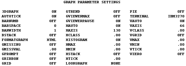 The ? SET GRAPH command lists the parameter settings that control graphs produced with the GRAPH command. These parameters are described further in Customizing Your Environment.