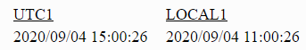 TABLE FILE GGSALES SUM DOLLARS NOPRINT COMPUTE UTC1/HYYMDS = DT_CURRENT_DATETIME(SECOND); COMPUTE LOCAL1/HYYMDS = DT_TOLOCAL(UTC1, 'America/New_York'); ON TABLE SET PAGE NOLEAD ON TABLE SET STYLE * GRID=OFF,$ ENDSTYLE END