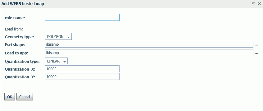 To add a geographic role for a Server-hosted map, click Add WFRS map on the Geographic Configuration Editor.