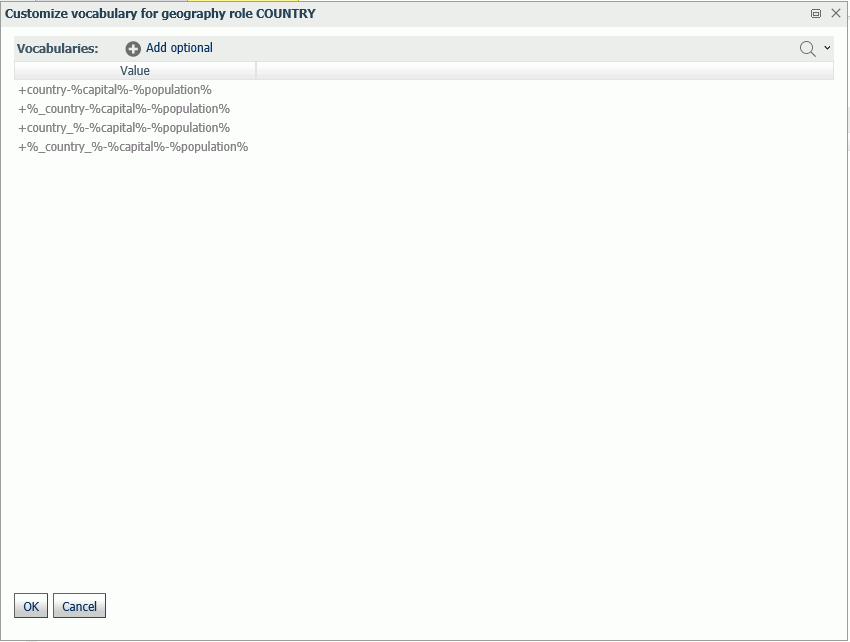 For example, the following are the vocabulary rules for the role COUNTRY.