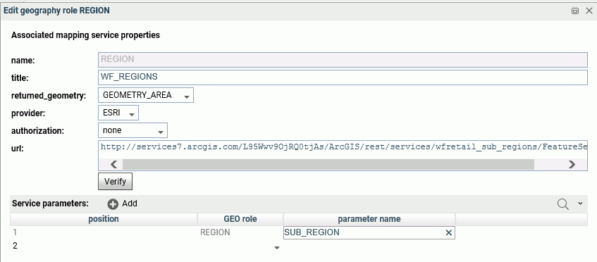Click Verify after entering the URL to verify that the map service is available by going to the specified URL.