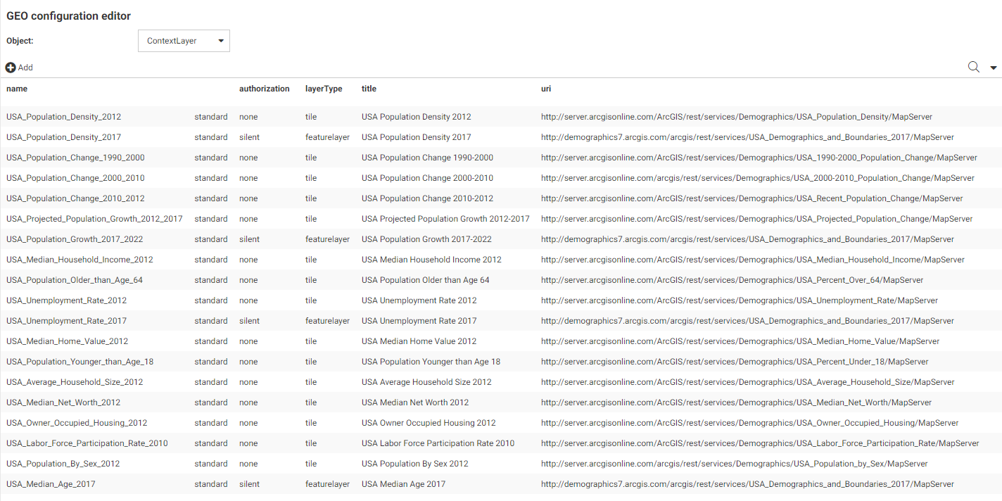 The following image shows the GEO configuration editor with the ContextLayer object selected.