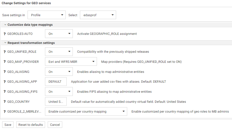By default, the server is configured for unified geographic roles. This configuration is controlled by the following settings.