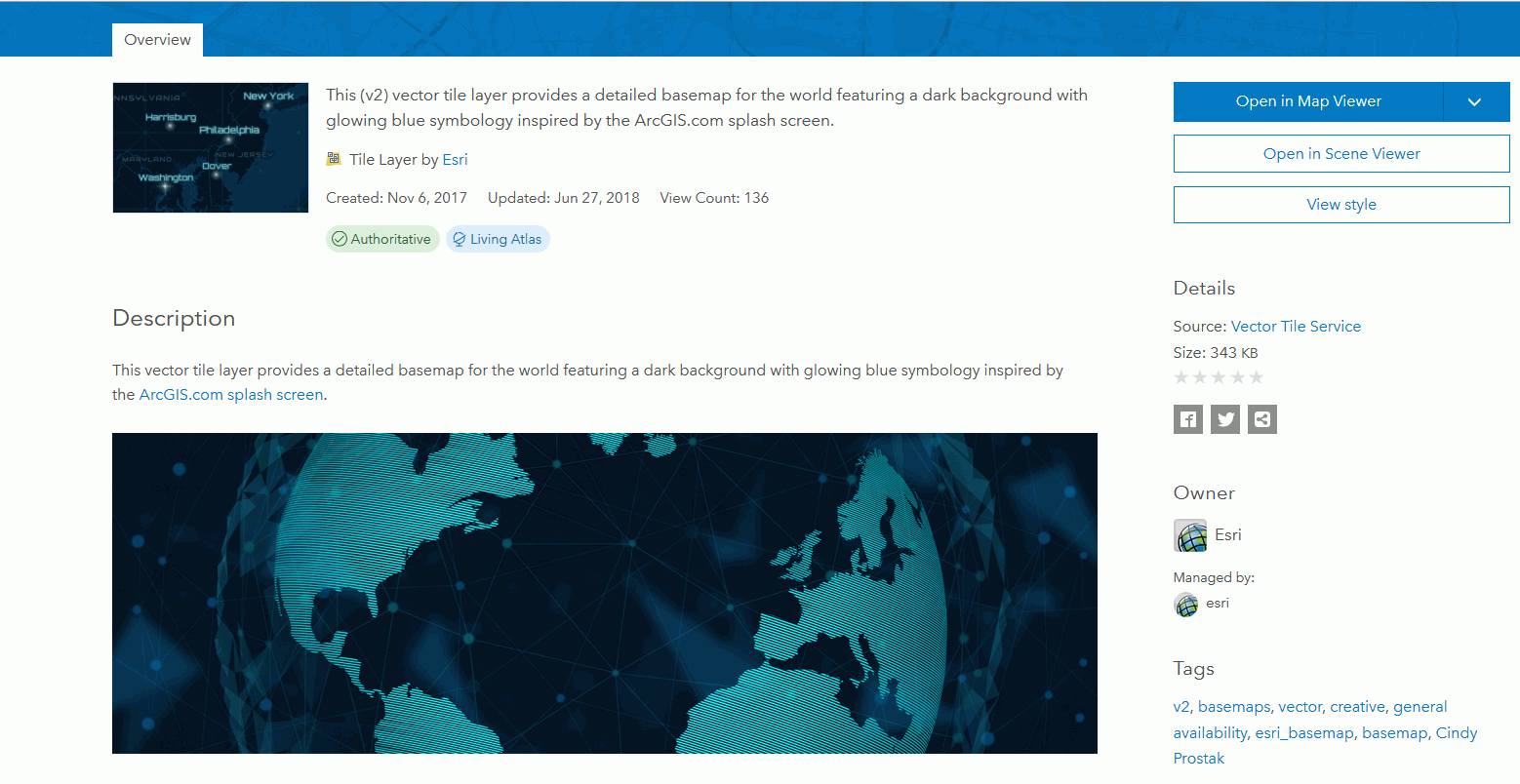 Note: If the vector basemap has multiple layers, its page on ArcGIS online will have links to each layer.