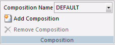 The Composition group contains commands to name, add, or remove compositions on the Precision Report canvas, as shown in the following image.
