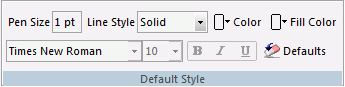 The Default Style group contains commands and options to customize the box, line, and text objects added to a precision report. The Default Style group is shown in the following image.