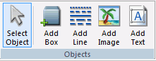 The Objects group contains commands to select and add objects to precision reports, as shown in the following image.