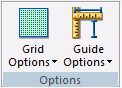 The Options group contains commands to set grid visibility and ruler options on the Precision Report canvas, as shown in the following image.