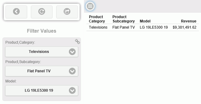 Additionally, you can toggle the hamburger control on the top of the report to reveal or hide the filter panel.
