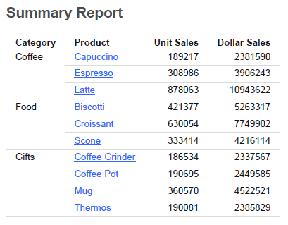 A report like the following sample is displayed.
