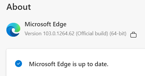 An example of the About Microsoft Edge dialog box is shown in the following image.