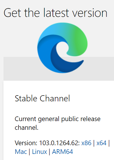An example of the Microsoft Edge Get the latest version dialog box is shown in the following image.