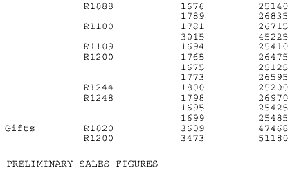 TABLE FILE GGSALES SUM BUDUNITS UNITS BUDDOLLARS DOLLARS BY CATEGORY ON TABLE SUBHEAD "SALES REPORT" " " "**(CONFIDENTIAL)**</1" "December 2002 </2" ON TABLE SET PAGE-NUM OFF ON TABLE SET ONLINE-FMT HTML ON TABLE SET HTMLCSS ON ON TABLE SET STYLESHEET * TYPE=REPORT, GRID=OFF, TOPMARGIN=0, $ TYPE = TABHEADING, JUSTIFY = CENTER, $ ENDSTYLE END