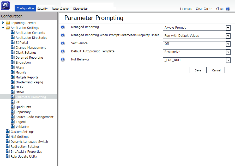The Parameter Prompting Settings determine parameter prompting behavior in the WebFOCUS Client.