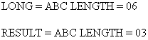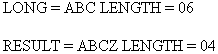 -SET &LONG = 'ABC ' ; -SET &RESULT = EDIT(TRUNCATE(&LONG)|'Z','9999'); -SET &LL = &LONG.LENGTH; -SET &RL = &RESULT.LENGTH; -HTMLFORM BEGIN <HTML> <BODY> <P>LONG = &LONG LENGTH = &LL</P> <P>RESULT = &RESULT LENGTH = &RL</P> </BODY> </HTML> -HTMLFORM END