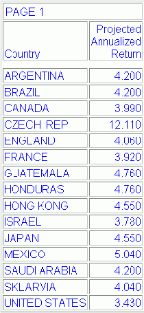 TABLE FILE SHORT SUM PROJECTED_RETURN BY COUNTRY ON TABLE HOLD AS SHORT FORMAT HTMTABLE END