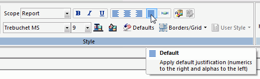 Each tab on the ribbon, whether static or contextual, contains commands and controls that are organized into groups, according to their function or relationship. All tabs are named and all groups are labeled. Icons are used to represent the commands or controls in each group. By default, all icons are labeled. There are a few styling icons in the Style group that are not labeled. Rest your pointer over an icon to view the tooltip that identifies it. An example of this is shown in the following image.